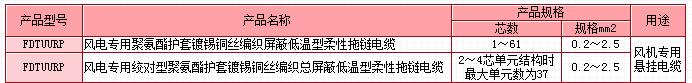 額定電壓300/500V及以下風電專用低溫型柔性拖鏈電纜